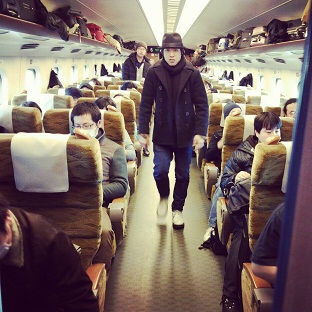 2013/3/5 こんにちは!今日は福島県郡山へチャーターバスで出発し、明日の2ステージにむけて仕込みであります(^^)バスのトイレ前でスカイツリーを見上げています。カッコつけてるけど、田舎者(笑)