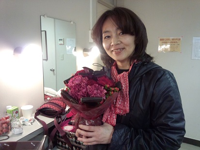 2人目は玉野市出身、俳優の浦吉ゆかさんです。高校で演劇部だったので、その恩師は今回実行委員として大活躍してくださいました。そしてこのお花はお友達からのプレゼント。ステキです。