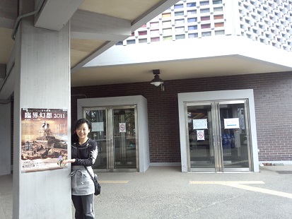 そして3人目、私、俳優の大嶋恵子です。会館のポスター前で記念写真。なんだか楽しい!