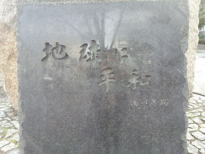 岡山市民会館前の石山公園で偶然見つけた碑 恒久平和を希求する湯川秀樹博士 「地球に平和」 大嶋恵子 |