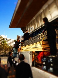 さあ搬入開始です! 実行委員会の方々に一生懸命荷物を運んでいただきとても助かりました。