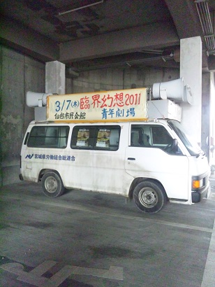 2013/3/7 こんにちは。八代ななこです。 この旅も残すところあとわずかとなりました。 今日は仙台! さっそく劇場で宣伝カーがお出迎えしてくれました。 この車で今日まで頑張ってくださったのですね。ありがとうございます。