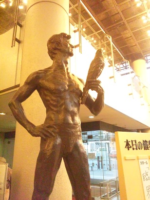 なんと、この作品には岡山県出身者が3人います。 それでは、はじめに岡山市出身の岡山豊明君を紹介します。彼はもちろん俳優ですが、ツアー中移動部としてテキパキ働いています。彼の案内でタクシーで市民会館まで。