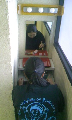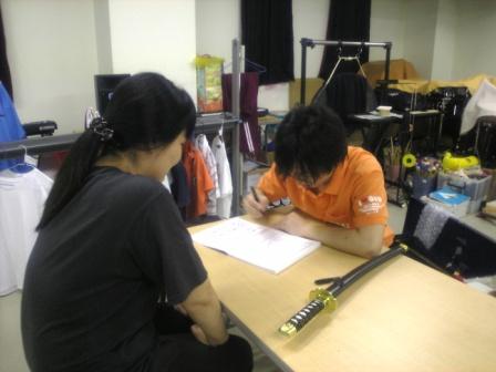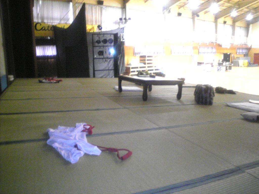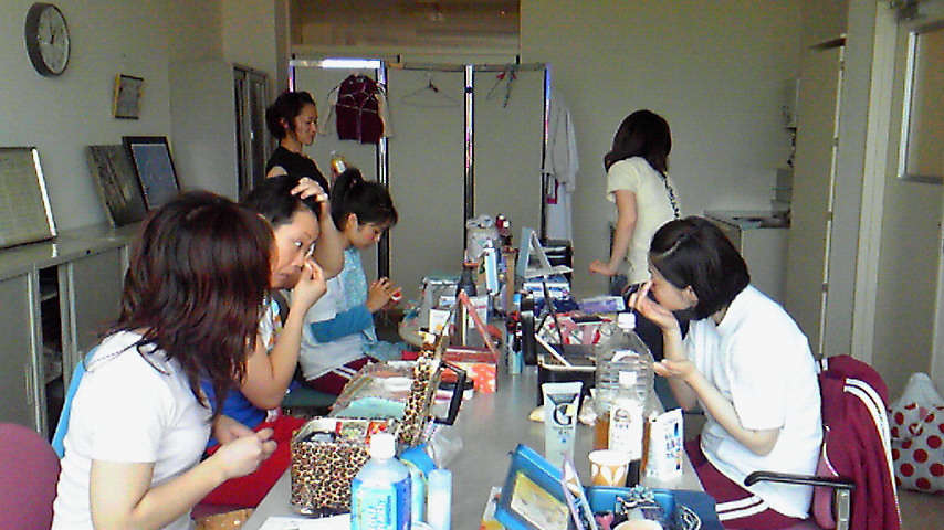 今日は開演前の女性楽屋、男性楽屋の様子を撮ってみました! 体育館公演の時は大体、体育館の傍にある教室や武道場をお借りして楽屋を作り、そこにみんな入ります。でも今日は女性、男性別々になりました。
