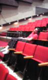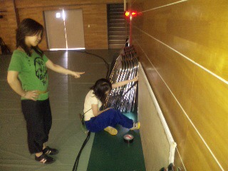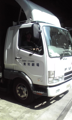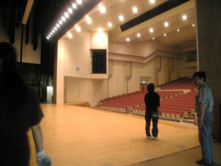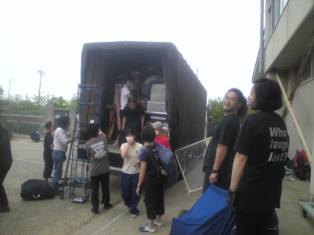 さて、楽しい昼食も終わり 明日の公演先、新潟市立白南中学校の体育館に到着です。この学校はとても新しく綺麗な体育館で、会館?並みに仕込みがしやすいとみんな大喜びでした。