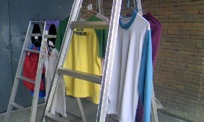 着替え場と衣装掛けを作って、衣装のアイロンがけをします。