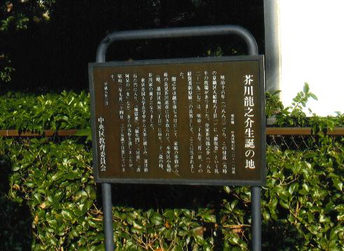 昨年に引き続き、今年も中央区労協事務局長さんのコーディネイトで、築地・銀座を一回りして、銀座ニュートーキョービアホールで乾杯!!前日の大雨から一転して晴天が広がる「東京の真ん中」を、汗ダクになって歩きながら、芥川生誕の地や、築地警察署、外国人居留地跡、泰明小学校などを訪ね、明治→大正の作家・文学人の足跡をしのびました。