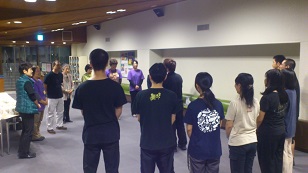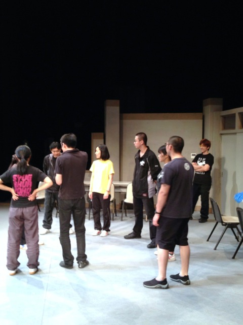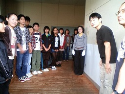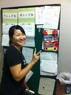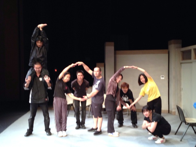 2013/10/12 こんにちは、原田先輩役の中川です。本日は神奈川県立青少年センターさんの会館主催事業に呼んでもらいました。 早速搬入しましたが、舞台が地下にありリフトでの搬入だったので4回に分けて入れました。 少し時間がかかりましたかね。 仕込みは時間があったので余裕をもって舞台を作る事が出来ました。 ![]() 仕込みが終わっていつもならロビーで出演者はウォーミングアップをするのですが今回はロビーが使えなかったので、男性楽屋で行いました! 手を組んで上の方に伸びて伸びて〜! ![]() この後、スピードランをやりました。スピードランは普段舞台で演じる時よりもスピードをあげて早回しでやります。 これは野球部員3人が喧々諤々やってるとこです。 「え?何のこと?キャプテン?」 ![]() ウォーミングアップも終わって青少年センターの方達との対面式です。 まあ、お互いにご挨拶ですね。 ![]() こちらが神奈川県立青少年センターの方々です。 ![]() 班を代表して班長の私、中川から館長さんへサインの書かれた色紙をプレゼントしました。 さあいよいよ本番です。 今日のお客様は中学生や高校生が沢山観に来てくれました。 とてもいい舞台を一緒に作る事が出来たと思います。 この後の座談会には中学生を中心に40名近くの方が参加してくれました。 公演班からはシンヤ役の鈴木匡史くんが参加。 芝居はとても好評だったようです! 芝居を観に来てくださった皆さん、今まで準備をしてくださった青少年センターの皆さん、本当にありがとうございました! 原田(中川為久朗) |