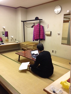 2013/11/18 こんにちは!原田先輩役の中川です。本日の公演は大村城南高校さんです。 3日ぶりの公演ということでちょっと緊張してます。 搬入は会場が少し小さめだったので、大道具の置き場に苦労しましたが、それ以外は条件も悪くなくスムーズに搬入、仕込みが出来ました! ![]() この日も朝から青年劇場の元劇団員、徳永義博さんが搬入から手伝ってくださいました! これからお昼ご飯を食べようとしてるところをお邪魔して1枚。 この会場の楽屋はちょっと変わってました。 ![]() ちょっと長めの廊下があってそこにみっつの部屋が並んでます。まるで旅館ですね! ちなみにポーズを決めてるのはジュンペーくんです! ここの楽屋はもう一つ面白いところがあって、普通楽屋は第1楽屋、第2楽屋などと書かれているのですが、ここは………