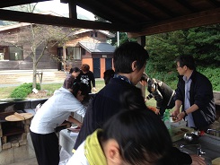 ![]() 途中、ミカン畑の中細くウネった道を通って海沿いの会場へ到着。 ![]() 舞台監督の新庄さん、運転お疲れ様です。 あとで聞いたところによると「運転していて2〜3度落ちるかと思った」そうです((((;゚Д゚))))))) ![]() なにはともあれ早速準備開始です。 ![]() 今回のメニューは… 焼き魚に、 手づくり餃子。 ![]() それに、ニンニクのホイル焼き…翌日も休日なので(´∀`=) モチロン!!焼き肉も忘れてませんよ ( ^ω^ )