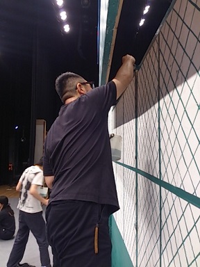 2014/5/18 こんにちは!この旅から「野球部員、舞台に立つ!」の大道具スタッフになりました安田遼平です!! さて、今日は新潟市立坂井輪中学校で舞台の仕込みです! 久しぶりの体育館の仕込みなので張出しという舞台を広げるセットも含めて4トントラックから全ての道具を降ろしました。 ![]() 手前では松橋さんが舞台を立てた後のイメージを膨らませていますね^ ^ 張り出しをセットして、いつも通り大道具を作り、照明を吊り、こんな感じに道具が綺麗になくなっていきます! ちなみに暗転中に真っ暗になるように暗幕などで窓を遮光するので窓も閉めていきます。 ![]() 明日の本番に向けてジュンペイ役の川端さんが走り始めました! きっと素敵な舞台にしてくれるでしょう(^_^) それでは今日はこの辺りで( ´ ▽ ` )ノ 安田遼平 |