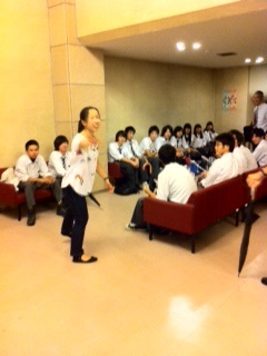 ![]() 2014/7/7-2 本日北稜高校さんとの座談会に参加したのは千佳でした♪本番中は客席のみんながどう観ているか分からないのでドキドキしながらロビーへ行くと… なんと先生方と16名の生徒さんが待っていてくれました〜! 明るい笑顔で迎えて頂きホッと胸を撫で下ろしつつ…。 1人1人の感想が聞けてとても嬉しかったです。キャッチャーのボールの取り方まで見ていた子も居て、細かい所も見られてるんだと改めて意識しました(^^) 二ヶ月後にクラス演劇があるそうで、台詞の覚え方や稽古の流れなど、芝居を作る上での質問も沢山ありましたよ〜。私が答えるのをみんな真剣に聞いてくれました、ありがとう(>_<) 是非自分達で作る作品、芝居も楽しんで欲しいなと思います♪ 桜井千佳(中津原知恵) |