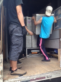 荷積みだ荷積みだ! わっしょいわっしょい! 2015/10/3 さあ!(^o^)/「野球部員、舞台に立つ!」2015年下半期の旅が始まります。公演班の船津です。