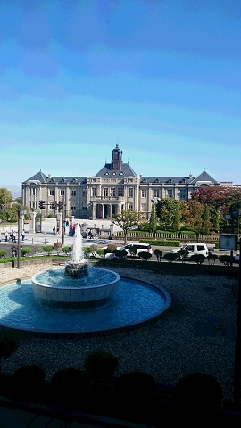 2015/10/6 山形の公演2日目です。今日から午前、午後の2ステージ! 秋晴れの気持ちのいい日です。 会館の近くには素敵な建物があります。大正時代のテイストがとてもかっこいいと僕は思います。