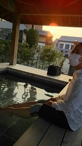 さらに天童市、温泉地でもあり…エリ(武智さん)と足湯に浸かってきました。しあわせ〜。明日からもがんばるぜー! 桜井千佳(中津原知恵) |