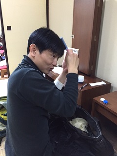 こちらは前回の公演から参加してくれている岡山くんです。彼も同じく俳優さんで高山くんと同様に今回はスタッフで来てくれてます。 2人とも顔が見えないのが残念ですね。次の時まで乞うご期待! そして舞台監督がこの旅から新しく青木くんが来てくれていますが、これまた残念ながら写真は次の機会にお披露目する事にしますね。