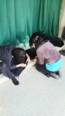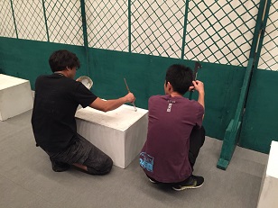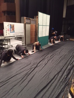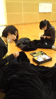 熊本県立菊地農業高校さんの体育館にて仕込み→本番でした。 野球部班初めての体育館乗り打ち(1日で仕込み〜バラシまで全て行うこと)公演でしたが、ここまで3度続いた体育館公演もあってかスムーズに仕込むことが出来ました(`◇´)ゞ 写真は、幕の補修をしてくれている武智さん&岡本さんです♪ 生徒さんも今日を楽しみに待っていてくれたそうで、本番では最初から笑いの絶えない温かい空間でした。バラシも多くの生徒さんが手伝ってくれて、、本当にありがとう<(_ _*)>