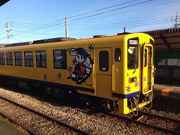 おまけに写真をもう一枚。会館近くを走る電車です! 照明スタッフの芳賀さんが撮ってくれました。 黄色の車体にイラストつき、可愛い(≧∀≦) カナ(藤代梓) |