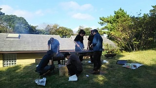 ![]() 2015/11/15 佐賀県での休日2日目。今日は有志によるBBQ〜\(^o^)/ 菊池さん(音響さん)&前さん(照明さん)を筆頭に『波戸岬キャンプ場』にて行いました。 男性陣による火起こしか〜ら〜の〜 ![]() 伊万里牛!!! ![]() 鯛の塩釜焼き!!! \(☆o☆)/ 美味しすぎる〜!!!!! ![]() そして…☆Toyo’sキッチン☆ ![]() 素敵なシェフがいる野球部班です。 <(_ _*)>ありがたや。 ![]() そして我らが前さんによる、旅公演そして過去〜未来への人生を吉田拓郎の歌にのせて…(バックコーラス岡本さん) ![]() 気持ちのいい天気で、海のそばで食べて笑って、魚採って…? ![]() ![]() もう最高のBBQでした! v(*^▽^*)v ![]() 桜井千佳(中津原知恵) |