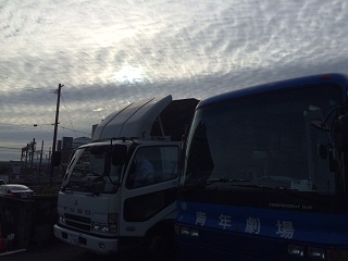 本日、青少年センター入りするには、泣く子も黙る紅葉坂を登らねばならない。 公演はお客さんから温かい声援をいただき、ダブルコールとなった。 舞台セットを片付けた後、子供たちやお母さん方がトラックを囲んで、感謝の気持ちを表して頂いた。 帰りは寂寥に包まれた紅葉坂を、とぼとぼと下り帰宅の道に着いた。明日は休んで、日曜日は再度山形市へ向かう。 前 政人 |