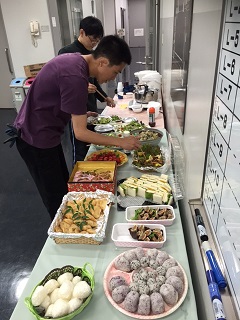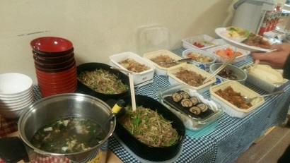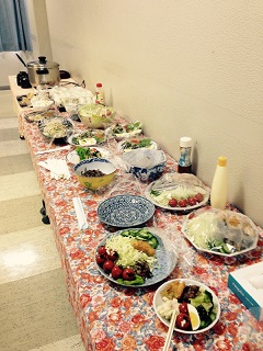 さてさて、本日は山形電波工業高等学校さんの公演です。 先ずは、本番前の舞台裏の様子をパシャリ。 お昼時です。お茶場には、味噌汁やコーヒーを求める人々が。束の間のリラックスタイム、和気あいあいとしております(´▽`) お弁当も食べて、体も動かして、さ!本番へと参りましょ!!
