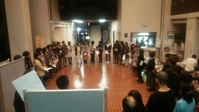![]() 2015/12/13-2 熊本市子ども劇場連絡会の公演終了後、ロビー交流会に参加しました!事前のワークショップにも参加していたので、普段の私と吉田絵里役の私とのギャップに違和感を感じないかなーなんて、ドキドキしてました(^◇^;) ロビーに出たら皆さんに暖かい拍手で迎えてもらえ、嬉しかったです☆ 「普段の役者はどんな感じ?」という質問から哲学的な感想、それから『この芝居、そして「一人一人がかけがえのない存在」「代わりはいない」という台詞にもっと早く出会いたかったです』という女の子からの感想などいただきました。 バラシ後は夕食交流会にも参加しました!舞台の感想やワークショップでのこと、次の作品のこと、昔ばなしにも花が咲きました(^^) 子どもと青年と大人の関係、子ども同士の関係、青年同士の関係、大人同士の関係など、子ども劇場さんたちが大事にして創ってきているものに感動しました!素敵です! この感動を胸に関東での公演も頑張ります!!! ☆*:.。. o(≧▽≦)o .。.:*☆ 武智香織 |