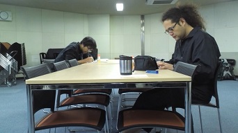 今回は前回ご紹介出来なかった舞台監督の青木くんを紹介します! 正面から撮りたかったのですがシャイな人なのでこれで勘弁という事です。彼はとても仕事が出来る頼れる舞台監督です。 次に前回ご紹介しておきながら顔が全く写らなかった2人を再度ご紹介します。